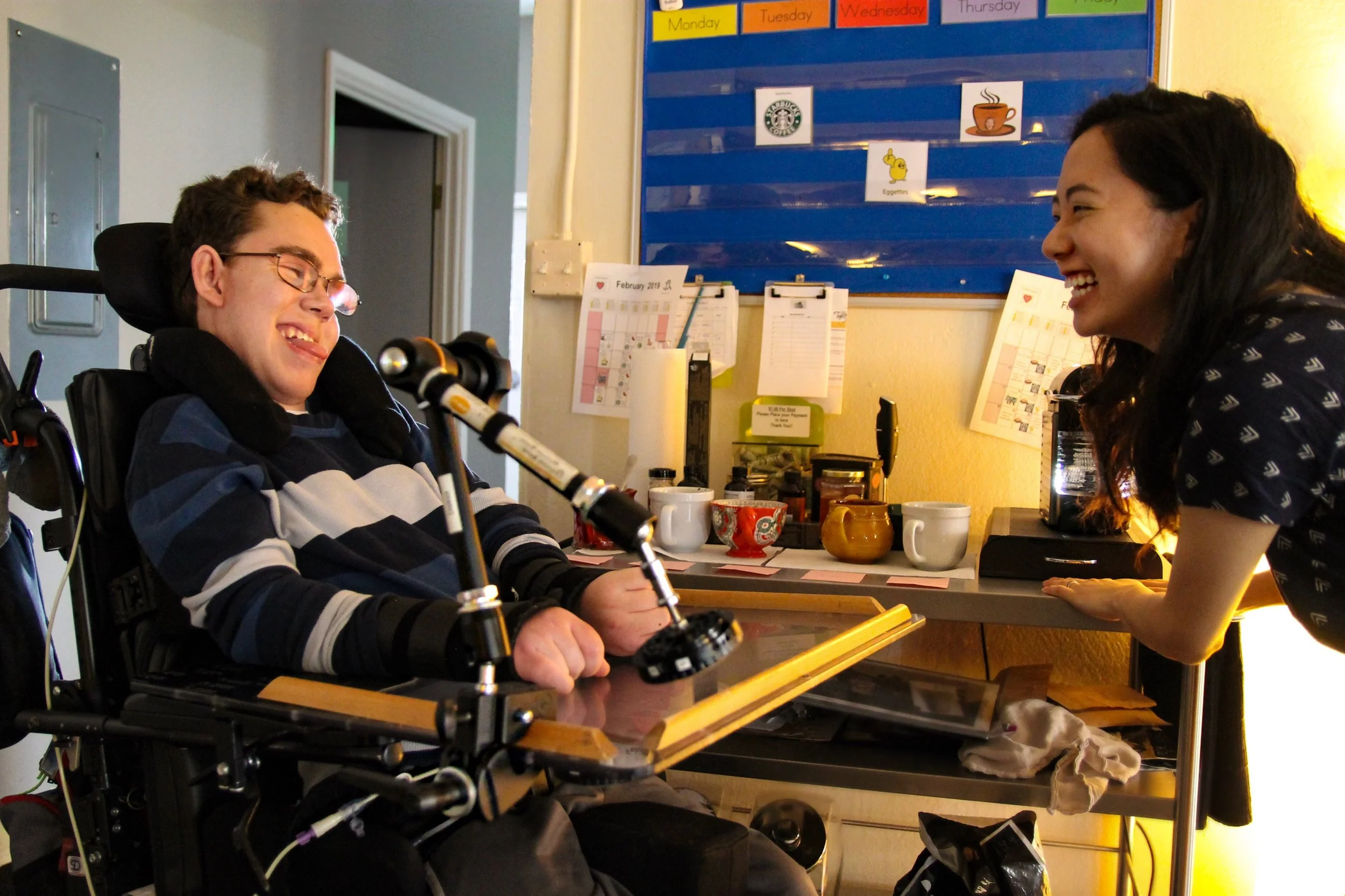 While I’m excited to be entering the world of specialty coffee and tea, it’s not the world I came from. My most recent cafe experience was at Colin’s Cafe. It was started by one of my role models and colleagues, Andrea Song, at The Avalon Academy. Colin worked hard to keep me on track by utilizing his AAC device to tell me step-by-step how to make a delicious latte. He made sure I didn’t underheat our milk in the microwave and he taught me how to thoroughly enjoy the sounds of a nespresso machine. He also taught me that smiles are a very important ingredient for all drinks. As a speech therapist, I was fortunate to work with incredible students like Colin (and his amazing mom!). While I still have so much to learn, I hope to carry on what I did learn at Colin’s Cafe: work hard, make drinks with lots of love, and make memories with the ones you love. Thanks, Colin. (: